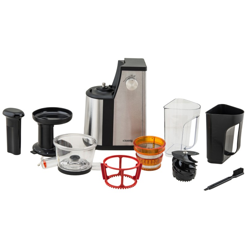 Cette nouvelle technologie d’extracteurs de jus H.Koenig préserve le goût naturel, les vitamines et l’apport nutritif des fruits et légumes en les pressant au lieu de les broyer comme les anciens dispositifs de presse-agrumes.